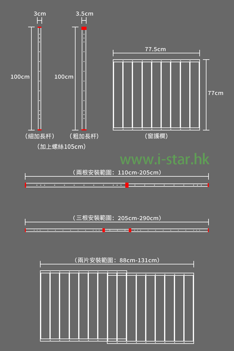 小款二片(合安裝)100-165cm(50cm高)