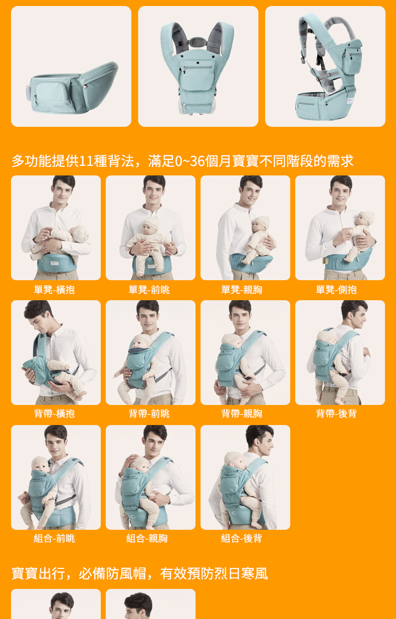 Jerrybaby Four Seasons hipseat 四季多功能腰凳揹帶凳抱帶新生兒