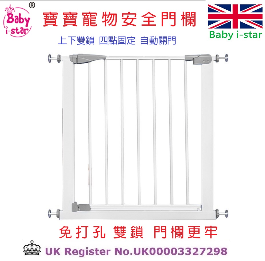 > 嬰兒/兒童/媽媽產品 > 安全圍欄/門欄/門柵 > 英國 Baby i-star Baby safe Children's security guards/免打孔上下雙鎖安全門欄**本公司是 英國Baby i-star香港/中國/澳門總代理,如非經本公